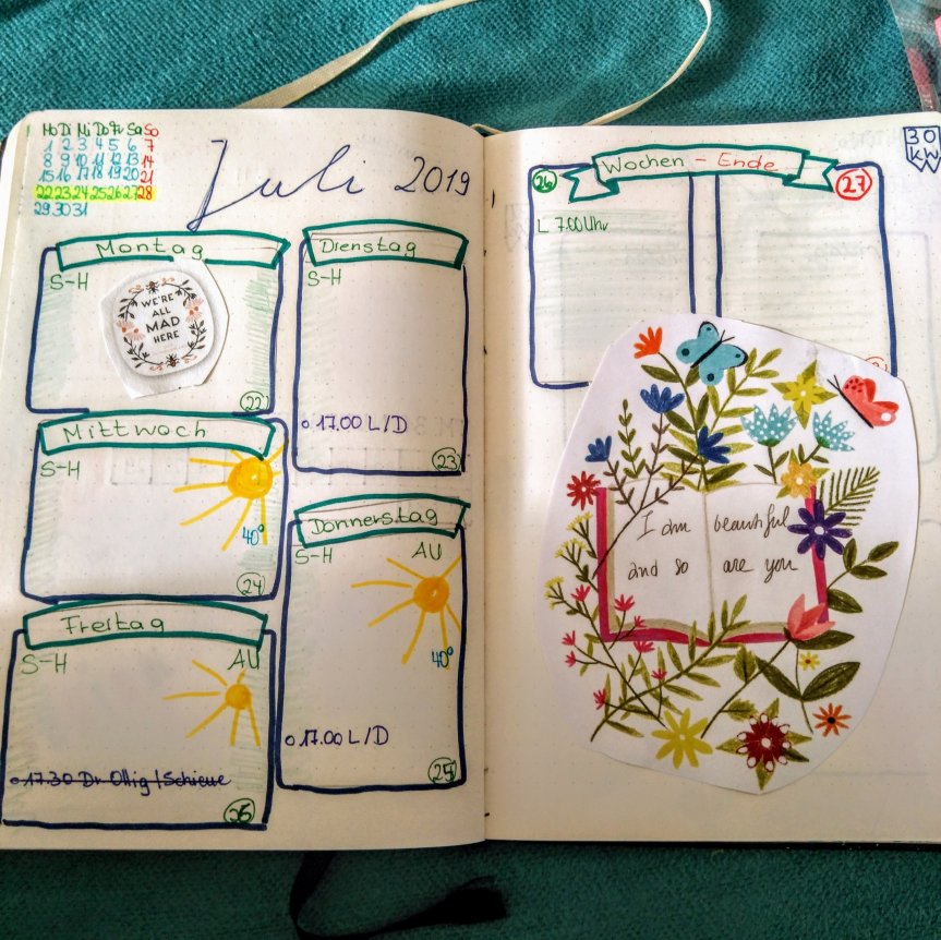 Ich habe nicht immer die innere Ruhe um zu zeichnen und zu planen. Meist steht. Anfang eines Monats nur das grobe Gerüst, damit ich bei meinen Terminen den Überblick behalte.