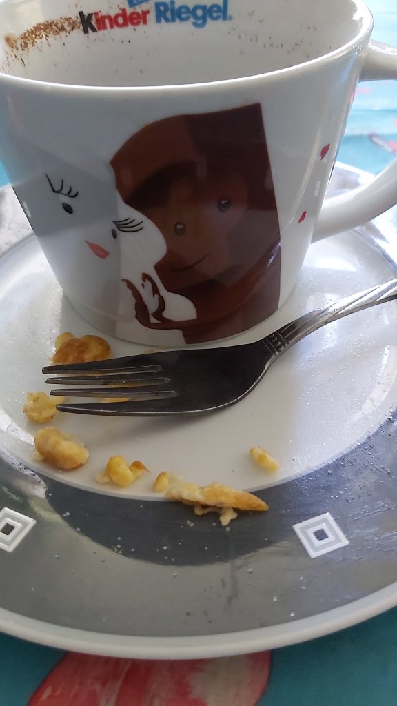 Zum späten Frühstück gab es erst einmal Rührei, mit Kräutern gewürzt und Kaffee bzw. Tee.