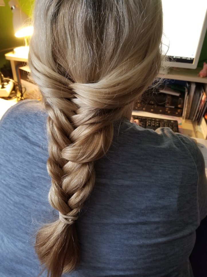 Das Novemberkind liebt es mit meinem langen Haar Frisuren auszuprobieren und ich mag es, wenn sie das tut. Das kommt dann dabei heraus, wenn die Bloggerin sich auf eine Rezension konzentriert.