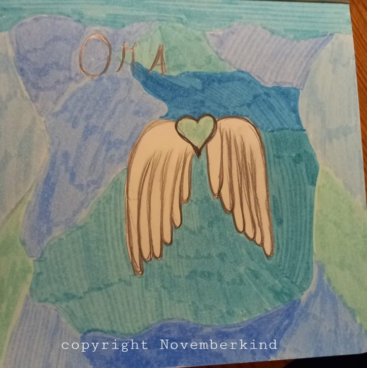 Doch das Novemberkind ist viel aktiver gewesen. Um ihre Trauer um die Oma zu verarbeiten zeichnete sie vor ein paar Tagen dieses Bild.