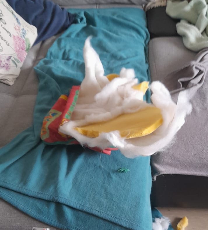 Der Herr Bretone hatte wohl seine fünf Minuten und hat netterweise das Balkonstuhlkissen auf Haltbarkeit untersucht. Oder wie wir in Hundekreisen sagen: Er hat mich vor einem explodierden Kissen beschützt.