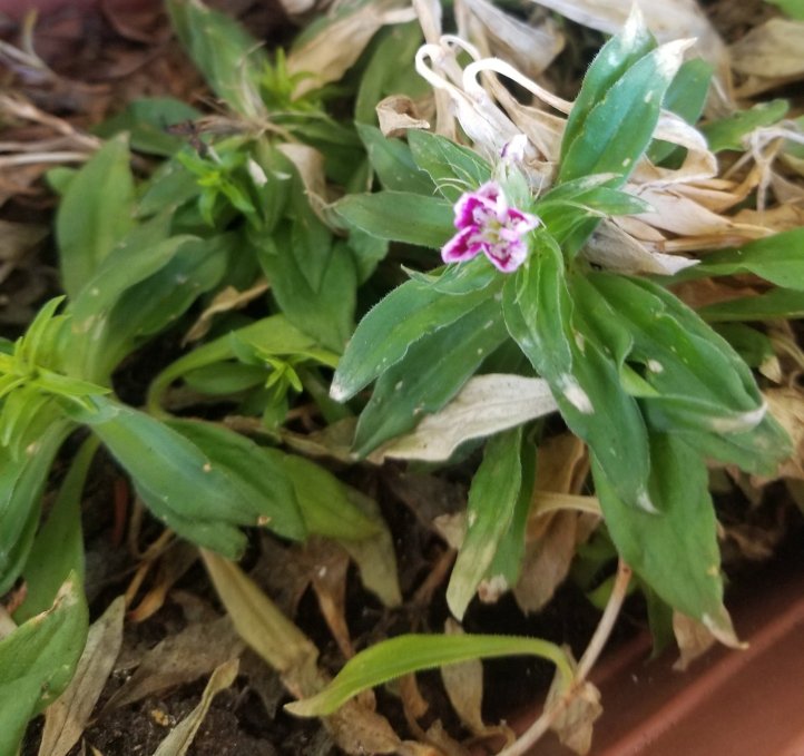 Ich war im Balkongarten fleißig und habe mal einiges entsorgt, was sich über Winter dort angesammelt hat. Dabei fand ich diese kleine Blüte. Über so ein Geschenk der Natur kann ich mich freuen wie ein Kind.