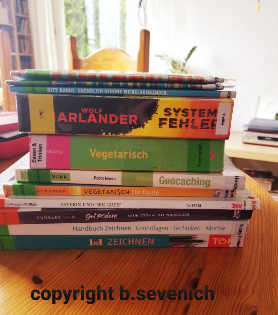 Tolle Lektüre habe ich auch bei meinem Stöberbesuch in der Stadtbücherei gefunden. Die Zeit musste einfach mal wieder sein. Abgerundet wird dieser Besuch immer durch die gute Beratung und die guten Gespräche des Fachpersonals dort. Gestern waren es Michaela und Nadine.