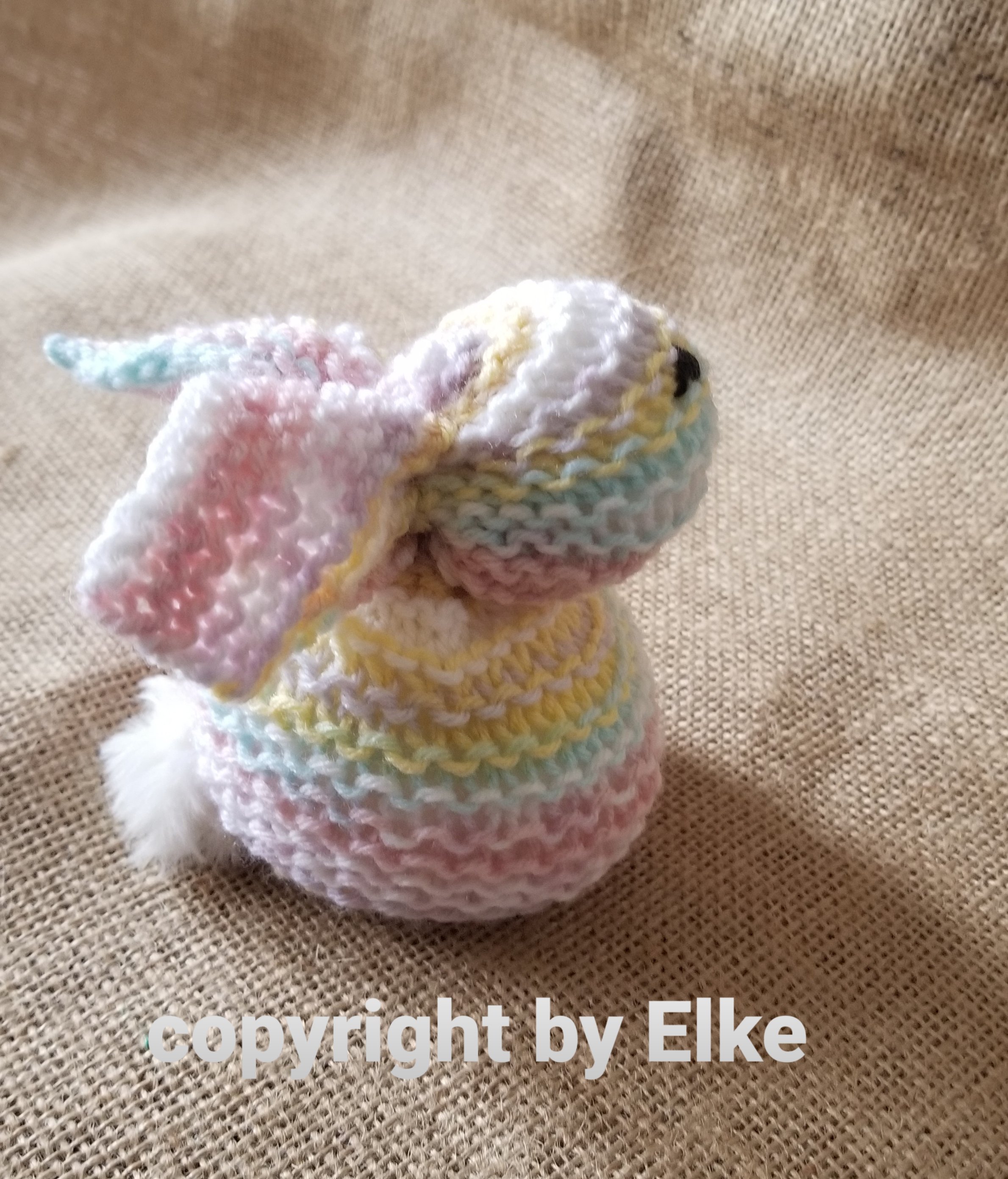 Ganz unverhofft sprang dieses Häschen über den Tisch. Kurz zuvor war es noch ein gestrickte Quadrat.