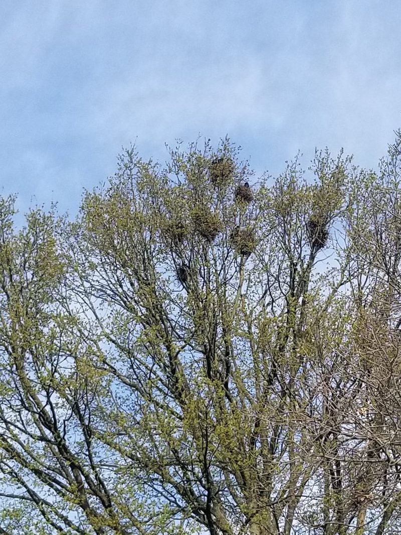 Eifriger Nestbau bei Familie Saatkrähe auf den Schulhofbäumen.