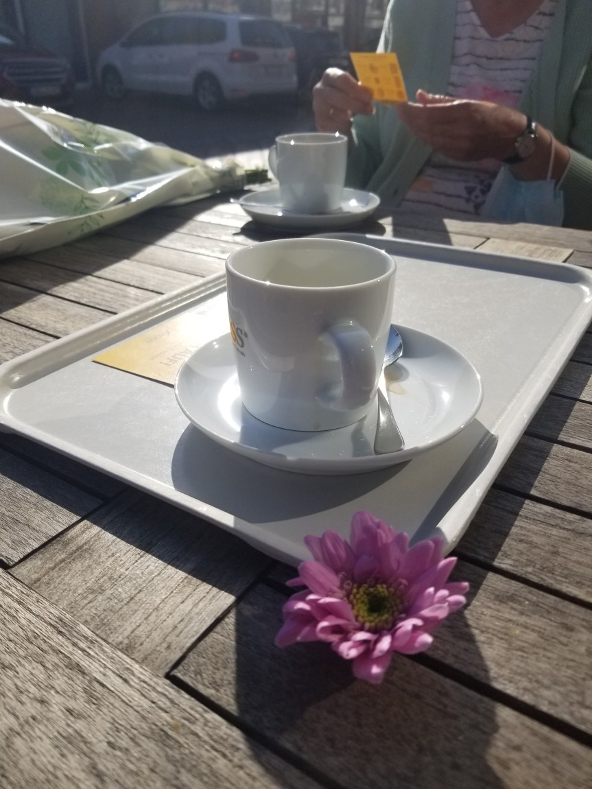 Der spontane Kaffee mit einer aus dem Urlaub zurückgekommen Bekannten in meinem Lieblingskaffee.