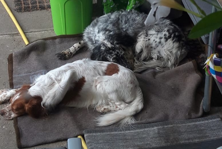 Herr Bretone durfte einen ganzen Tag zu seiner Freundin Lotte, während ich lange arbeiten musste. Am Abend war er müde und glücklich wieder zu Hause zu sein. Kuscheln kann er aktuell nicht genug.
