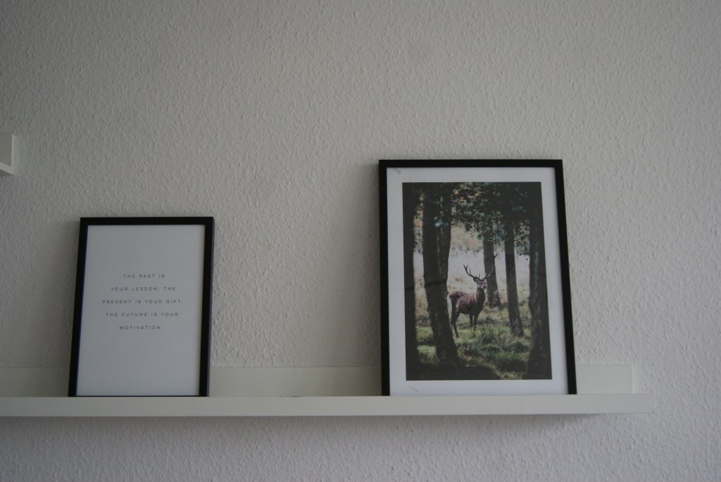 Über meinem Sofa befindet sich seit ewigen Zeiten eine weiße Wand. Gestört hast sie mich schon immer, eine wirkliche Lösung hatte ich nicht. Zwei Bilderregale warteten in der Rumpelkammer auf ihren Einsatz, doch mir fehlte einfach die Idee, wie ich sie gestalten möchte.