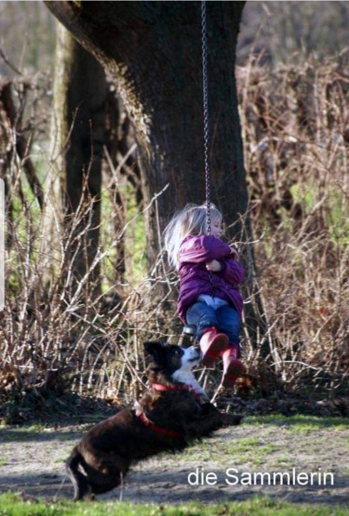 Hier siehst du mein liebstes Foto aus der vergangenen Woche. Facebook schenkte mir diese Erinnerung . Ich liebe es und darum ist es auch das Beitragsfoto für den heutigen Wochenrückblick. Das Novemberkind, damals vier Jahre alt, fährt zum ersten Mal mit einer Seilbahn auf dem Spielplatz. Mit dabei die Löwentochter und ihre Hundedame Ronja. Ronja wollte den Teller der Seilbahn fangen, das Novemberkind erzählte mir dieser Tage, sie hätte Angst gehabt und zugleich Spaß. Angst das Ronja ihr aus Versehen in den Po beisst und Freude, weil der Hund mit ihr spielte. Was man nicht sieht, auf ein Aus von der Löwentochter hat der Hund sofort abgelassen, das Maul ist nicht geöffnet ( für alle nicht Hundebesitzer) und ist zu uns zurück gekehrt. Heute sind wir neun Jahre weiter, Ronja ist fünfzehn Jahre alt und mag immer noch hinter der Seilbahn herlaufen.