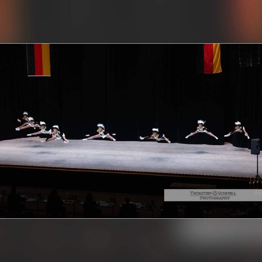 Montagmorgen waren wir immer noch total geflasht von den Ereignissen am Samstag. So langsam drang die Erkenntnis in das Bewußtsein der Novembertochter, dass sie tatsächlich mit ihrer Garde Deutscher Juniorenmeister 2023 geworden ist. Die Fotos und auch das Video zum Tanz haben wir erst im Laufe der Woche erhalten. Alle Fotos der ganzen Veranstaltung sind beim Fotografen Thorsten Schnell zu sehen. Für uns gibt es dort 12 oder 13 Stück. Das hier ist mein absolutes Lieblingsfoto. Mein Kind ist die Dritte von rechts.