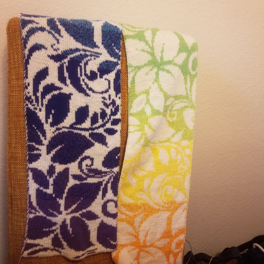 Es ist immer so eine Sache, was darf man während einer Krankschreibung und was nicht. Mein Kreislauf spielt total verrückt und der Arzt hat zu langsam machen, leichter Bewegung, viel Ruhen und alles was mir gut tut, geraten. Meine Strickfreundinnen waren der Meinung, gemeinsames Lachen und Handarbeiten gehört dazu. Also klapperten die Nadeln der anderen, während ich ihre Werke bewunderte und versuchte mein permanentes Schwindelgefühl zu ignorieren. Hier der aktuelle Schal, der auf den Nadeln meiner Freundin Christina entsteht. Falls du dich fragst, was aus meinem Loop geworden ist. Der ist quasi fertig, gefällt mir nicht und wird heute Nachmittag noch mal neu gestartet.