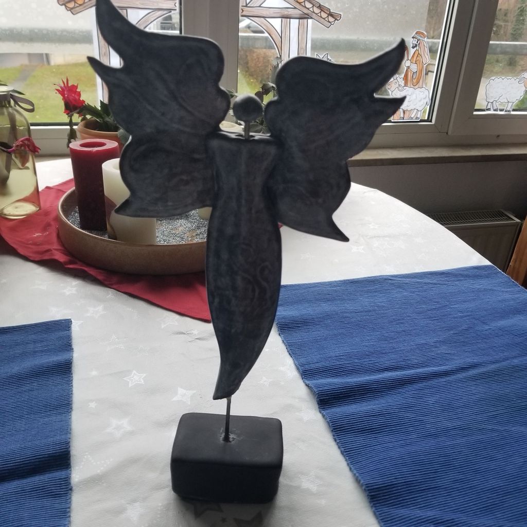 Diesen wunderschönen Engel habe ich geschenkt bekommen. Unsere Schulleiterin hatte in ihrem WhatsApp Status die von ihrer Mutter selbst hergestellten Engel und mehr. Ich habe nur ganz kurz erwähnt, das ich den schwarzen Engel so toll finde und am letzten Schultag hat sie ihn mir geschenkt.
