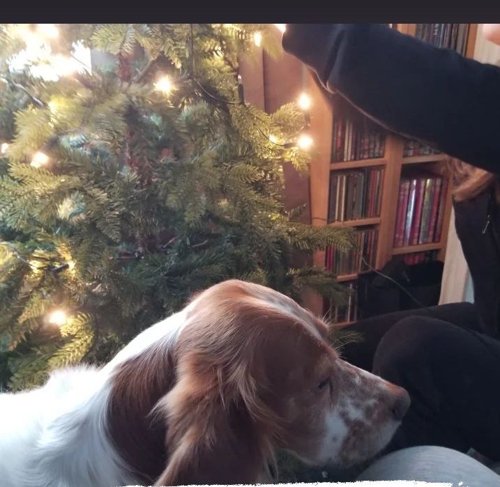 Der Tannenbaum steht. Gestern Nachmittag war es soweit. Der Hund war eine große Hilfe, wie man auf dem Foto sehen kann.