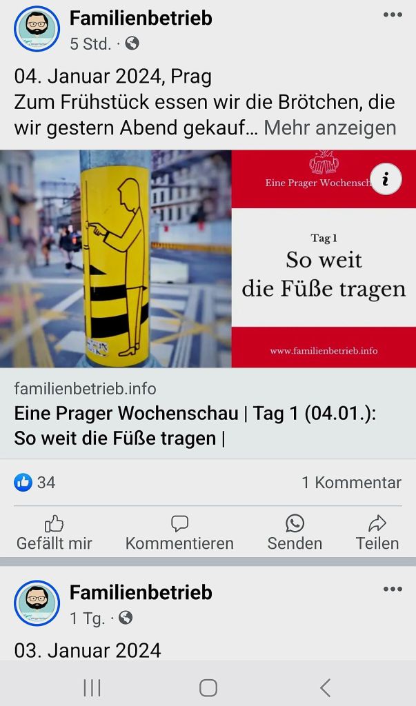 Wenn ich das Licht in meinem Zimmer einschalte, kann es passieren, daß auch das Töchterlein erwacht, also lese ich online. Am liebsten Blogs. So wie heute Nacht. Lange war ich nicht mehr beim Familienbetrieb. Wie gut das ich es heute „schaffe“, ich hätte sonst eine Reise nach Prag verpasst