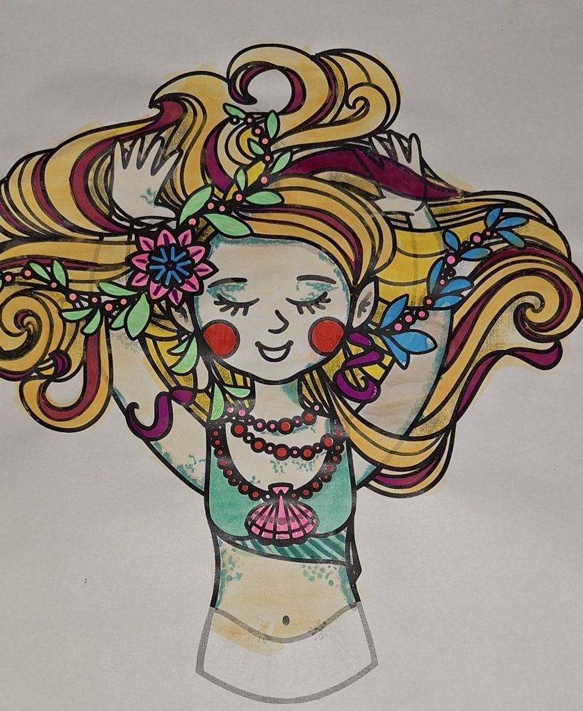 Die Kollegen gestaltet die Fenster in der OGS neu und ich hatte ihr zwei Meerjungfrauen versprochen. Während der Arbeitszeit komme ich nicht dazu. Also bleibt nur das Homeoffice. Bine Brändle hat tolle Vorlagen zum Thema Meerjungfrauen und Meerjungs, die sich alle auf meiner Festplatte befinden. Ich denke, das ein oder Motiv wird demnächst auch bei mir zu Hause zu finden sein.