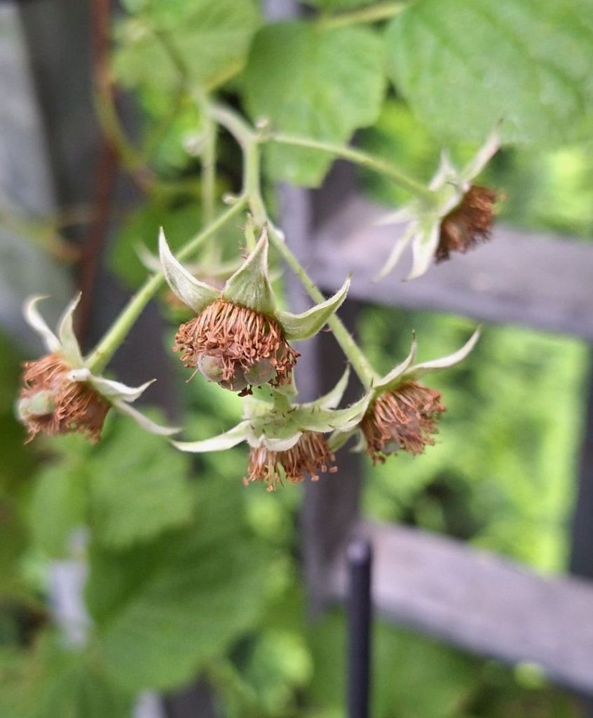Die Himbeeren auf dem grossen Balkon haben angesetzt.
