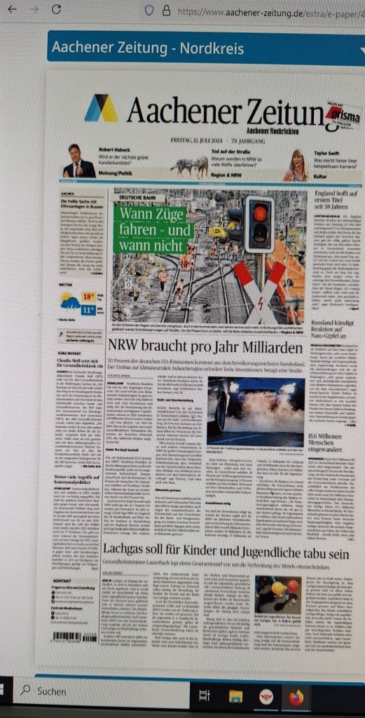 Es regnet mal wieder und in einer Pause zwischen den Schauern bin ich wieder nach Hause geradelt. Ich hatte keine Lust einkaufen zu gehen . Stattdessen habe ich mich an den PC gesetzt und habe die Zeitung „aufgeschlagen“