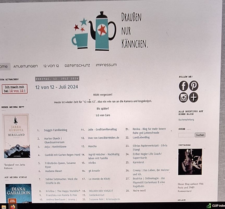 Es ist der Wahnsinn. Eine Woche Urlaub und ich bin komplett aus dem System Datum heraus. Erst als ich mich mit den Freitagsfrauen beim Kaffee traf, viel mir auf “ Ah, es ist der 12te“ und „Oh, ich habe noch keine Fotos gemacht“.