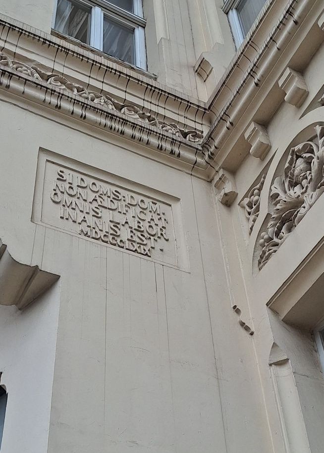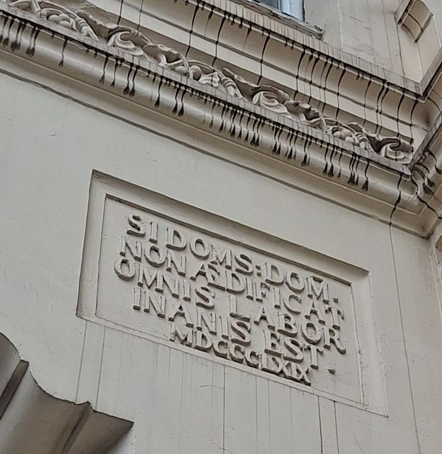 Wir entzifferten mit viel Engagement das Baujahr des Gebäudes. Den lateinischen Text kann ich leider, aus mangelnden Lateinkenntnisse, nicht entziffern.