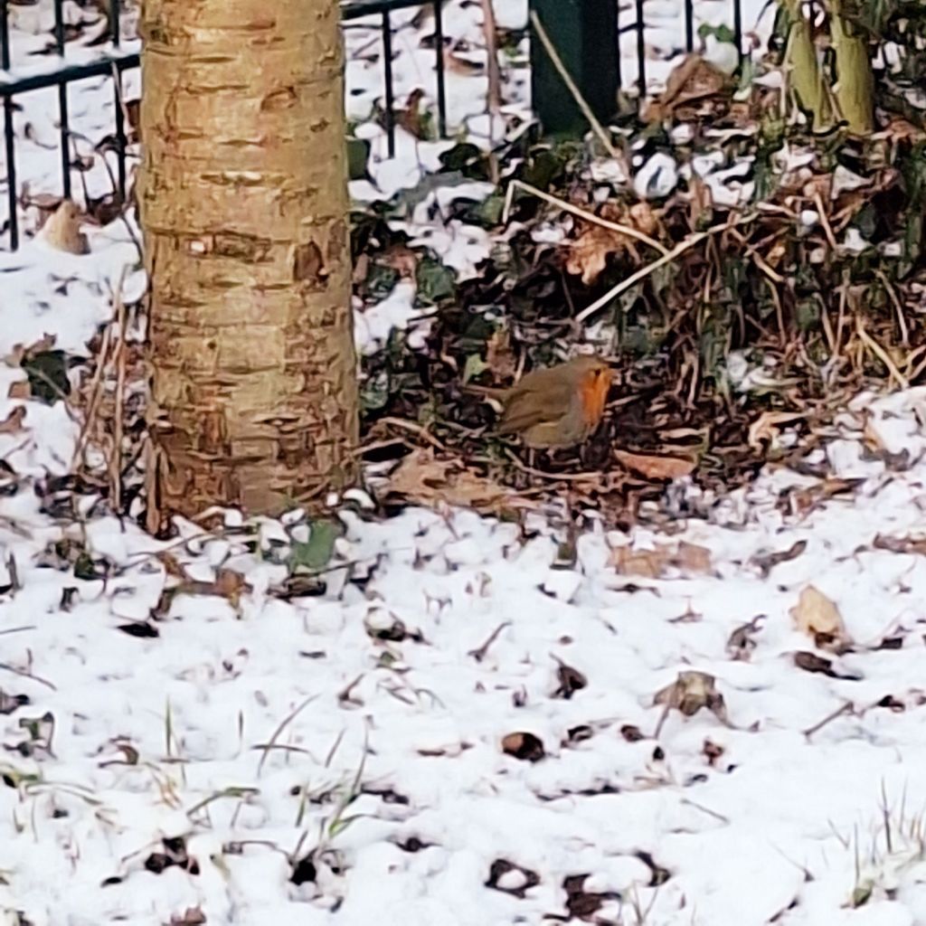 Ist das so? Vor kurzem lag noch Schnee? Nach zwei Tagen, mit ein wenig Sonne, rückt die Kälte schnell in Vergessenheit. Dieses Rotkehlchen wohnt in den Hecken, die wir bei unseren morgendlichen Runden passieren. Zusammen mit unzähligen Meisen. Auch einen Grünspecht habe ich dieser Tage gesichtet. Der nahegelegene Friedhof mit seinem alten Bäumen und Büschen bietet ihm wohl das richtige Wohnumfeld.