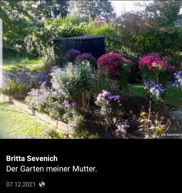 Es ist ein kleiner Ausschnitt, ihre Lieblingsblumenecke. Die anderen Fotos habe ich tatsächlich nicht mehr gefunden. Ich trage sie in meinem Herzen, so wie die Bilder meines Gartens