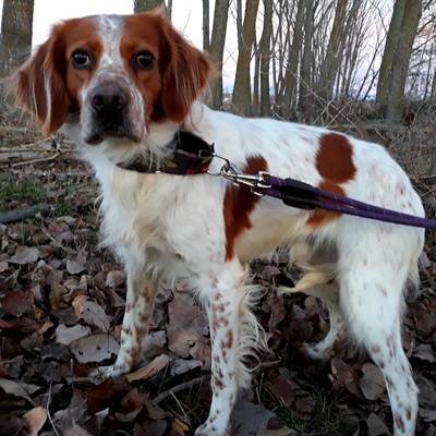 Hier mit seiner Freundin Lotte. Lotte hat einen großen Garten,in dem Herr Bretone ohne Leine rennen, toben und manchmal (verbotenerweise) buddeln kann.