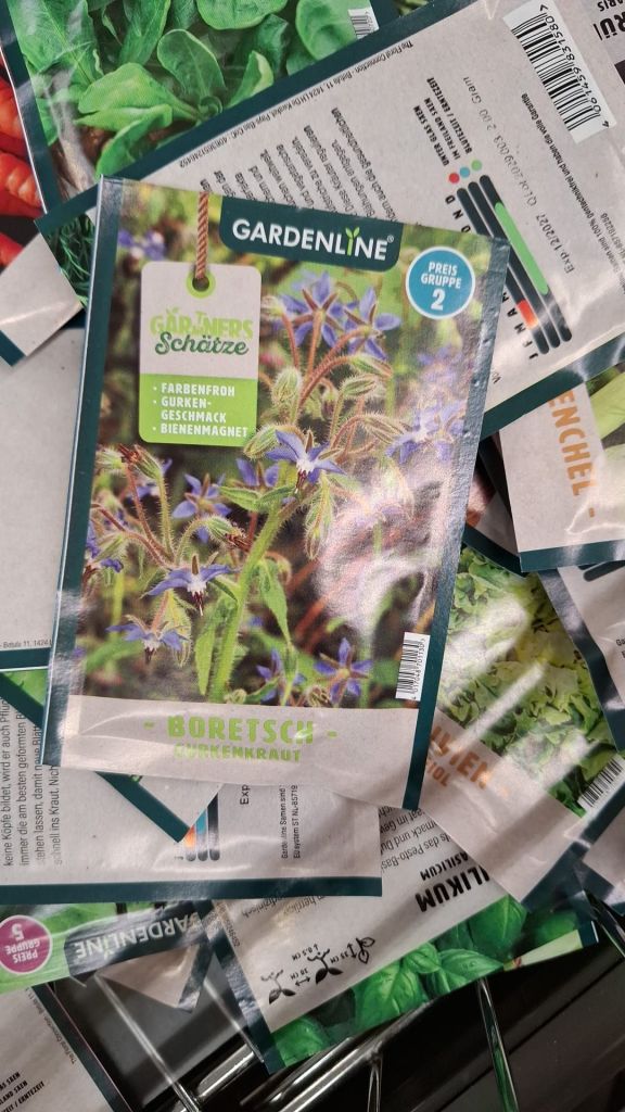 Die Löwentochter hat sich wohl an meine Suche nach dieser Pflanze erinnert. Spontan brachte sie Samentüten vorbei. Der Borretsch war in meinem Garten meine Lieblingspflanze. Jetzt kann ich sie hoffentlich bald auf meinem Balkon begrüßen.