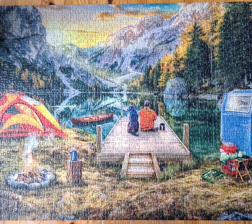 Das 1000er-Puzzle ist endlich geschafft – dank der Löwentochter, die mit Adleraugen die letzten fehlenden Teile gefunden hat. Ein gutes Gefühl, das Kapitel abschließen zu können, denn aus der Klosterbuchhandlung habe ich mir schon die nächste Herausforderung mitgebracht.
