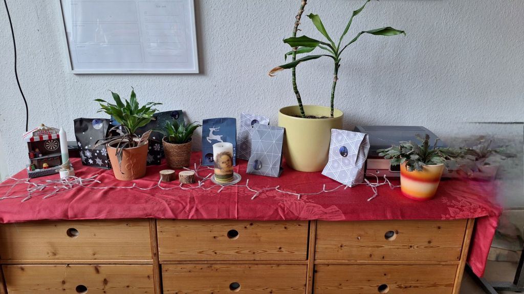In meinem Wohnzimmer weihnachtet es schon ein wenig. Der Adventskalender suchte einen Platz. Jetzt kann ich auch die letzten Tüten füllen.
