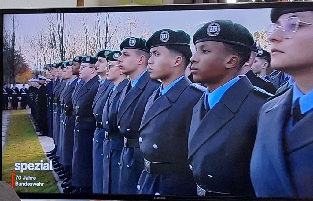 Der Fernseher ist auch an. Feierliches Gelöbnis in Berlin. Gemeinsam mit dem Teenager geschaut. Interessant, dass die schief sitzende Krawatte des Bundespräsidenten sie so ablenken konnte. Nicht die einzige Unstimmigkeit zwischen uns.