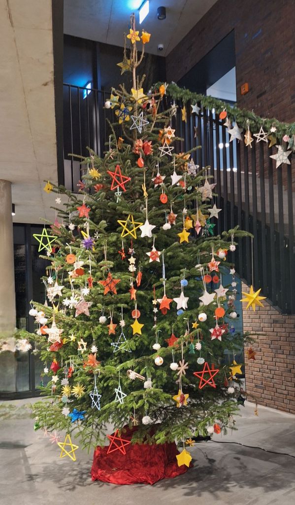 Da es durchaus sein kann, dass wir zu Hause dieses Jahr auf ihn verzichten, habe ich für das Weihnachtsbingo dieses Prachtexemplar fotografiert. Er steht im Foyer unseres Rathauses und wurde traditionell von Kindern bestückt.
