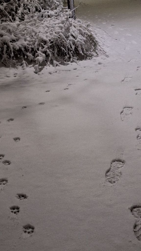 Ganz früh am Morgen die Spuren von Herrn Bretone und mir.